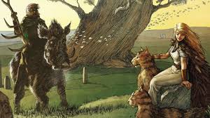 When the descendants of Ymir had multiplied beyond number, the sons of Borr put Ymir to death; in his blood all of the Giants were drowned except Bergelmir, who with his wife saved himself by means of a boat. The Æsir thus failed in their attempt to exterminate the race of Giants, and Bergelmir’s kindred grew to a mighty host. The Giants, or Jotuns, were also known by the names Thursar (pursar), Rime-Thursar (hrímpursar), Ettins (risar), Cliff-Ettins (bergrisar), and Trolls (troll); they persisted in the most evil courses. From the body of Ymir the sons of Borr made earth, sky, and sea. The body itself became the earth, the bones became mountains and stones, the hair became trees and grass, the skull became the vault of heaven, the brain became clouds, and the maggots in Ymir’s body became small Dwarfs, who dwelt beneath the earth’s surface and in rocks, and who lived on a better footing with the Giants than with the Æsir.